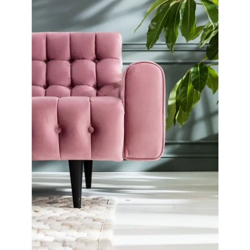 Vibrações retro: o nosso Sofá Milchbar é uma afirmação de autêntico estilo e ao mesmo tempo uma peça de mobiliário confortável com encanto retro descontraído. Independentemente do ângulo a partir do qual se olha para esta pequena jóia, tem sempre um aspecto arrebatadoramente elegante. A tonalidade exclusiva do rosa e o elegante capitoné no assento e encosto representam o charme especial deste sofá de três lugares. O revestimento sensualmente macio feito de veludo é uma verdadeira alegria. Quer o utilize como um lugar de relaxamento para uma noite sozinha em frente à televisão, ou como um sofá para uma agradável reunião com os amigos, Milchbar oferece assentos perfeitos para todos aqueles que gostam de design elegante. Outras versões também estão disponíveis.